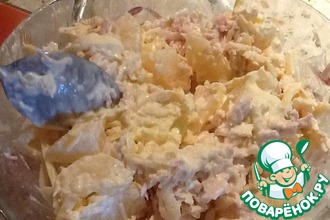 • [b]По рецепту.[/b] Все компоненты заправки поместить в баночку с плотной крышкой и как следует встряхнуть, чтобы смесь стала однородной. Попробовать и, если необходимо, приправить специями по вкусу. Вылить заправку в миску с курицей, перемешать и дать настояться в течение 20-30 минут.