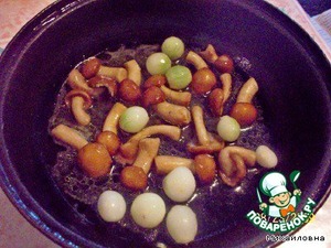 • Целые луковицы и грибы потушить в масле.