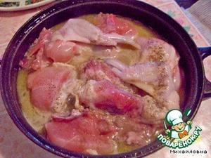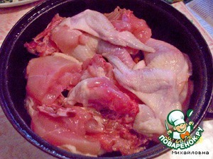 • Положить куски цыплёнка,
