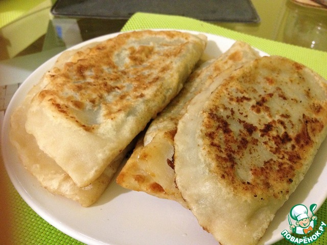 3. Видимо, раскатала слишком тонко. В итоге в процессе жарки стала сочиться ночинка, и лепёшки на выходе получились в липкой карамели - потом их еще и от тарелки еле оторвала