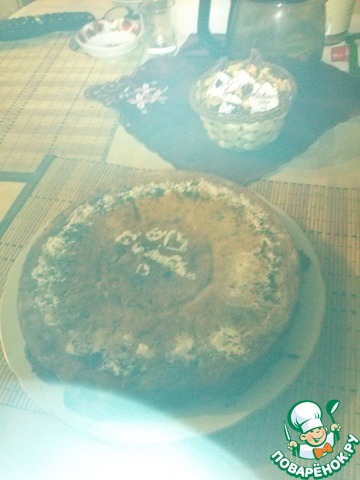 Разрезать пирог на кусочки, посыпать сахарной пудрой.