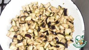 • Баклажаны помыть, порезать кубиками. Добавить приправу, дать постоять 10 мин.