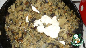 • Через 7 мин, когда баклажаны станут полумягкими, добавить майонез и протушить под крышкой мин 7.