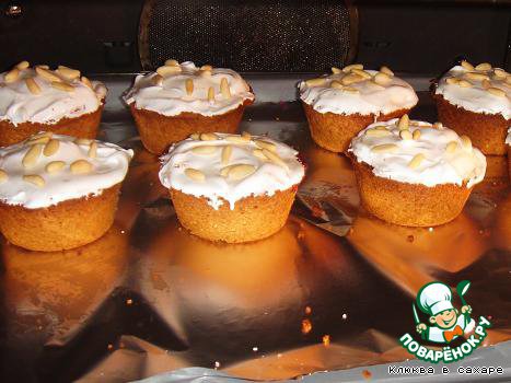 Сверху посыпаем кедровыми орешками и снова ставим в духовку. Теперь уже на режим "гриль только сверху", на 150 градусов.