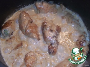 В этом же жире подогреть сливки и посолить, вылить наверх на рулеты и под закрытой крышкой тушить минут 20-30. -