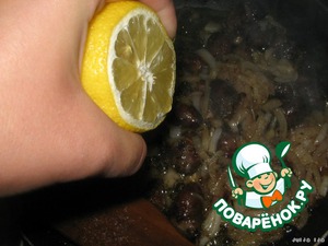 И лимонный сок. Хорошо всё перемешать и обжаривать на среднем огне, постоянно помешивая, минут 10 (до полной готовности сердечек).