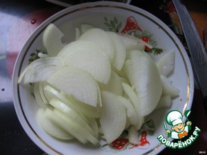 Нарезаем лук и перец полукольцами, чесночок тоненькой соломкой и меленько петрушечку.