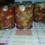 Попробую ещё, ведь первый блин обычно комом. Вот и у меня... Самая большая кастрюле 5 литров, в неё не поместились, пришлось разделить на 2. Комфорки сильно горят, бурлило капитально, а не тушилось, поэтому кабачки все развалилась уже через 40’. Да и совет по 9% уксуса, похоже неправильно поняла, добавила стакан+ 4 ложки. Многовато получилось.