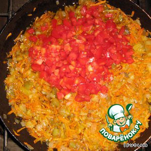Добавить помидоры, посолить и поперчить и еще немного обжарить.
