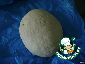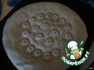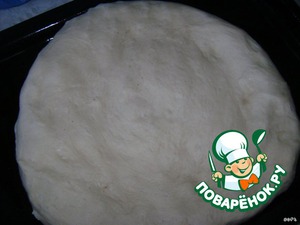 На смазанный маслом противень положить колобок и аккуратно, начиная от середины, придавливая пальцами, придать форму лепёшки.