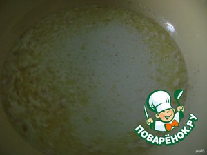 В молоко налить кипячёную остывшую воду. Добавить соль, сахар, соду, майонез, масло, дрожжи. Все хорошо перемешать.