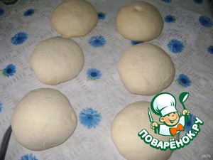 Через час - полтора тесто разделить на 6 кусков примерно по 300 гр каждый. Сделать колобки и дать ещё "отдохнуть" минут 20-30.