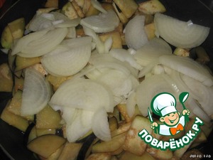 Пока тесто подходит, займёмся начинкой. Баклажаны нарежем треугольничками, обжарим на растительном масле (при желании можно баклажаны вымочить в подсоленной холодной воде, но я этого не делала, мне нравится их горчинка).