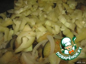 Добавляем перец, нарезанный соломкой.