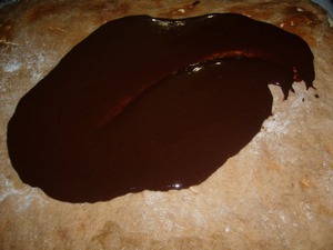 Мне моя дочурка подсказала замечательную идею, как сделать, чтобы при намазывании тёплым шоколадом крем из торта не растекался - поставить торт на 15-20 минут в морозилку, и когда он слегка приморозиться, выливать на него ещё тёпленький шоколад и быстренько-быстренько разровнять. Тогда глазурь получается блестящей, ровненькой и очень аппетитной.