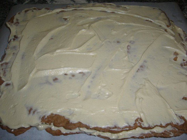 Вылить шоколадную глазурь на перемазанные коржи и хорошо разровнять. -