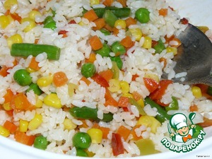 Для фарша отварить рис, овощи мелко нарезать (либо взять готовую нарезку) и обжарить. Смешать с рисом.
