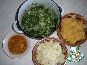 Сделаем поджарку из лука и морковки, отварим и порежем картошку, немного гороха (не обязательно, но я кладу), потрем на крупную терку свежие огурцы, и нарежем огромное (если летом) количество зелени (лук, укроп, петрушка)…. Зимой все это есть в магазинах и на рынках, не проблема (если остался вкусный рассол из помидор или огурцов)… Ведь главный компонент нашего супа-окрошки РАССОЛ!!!