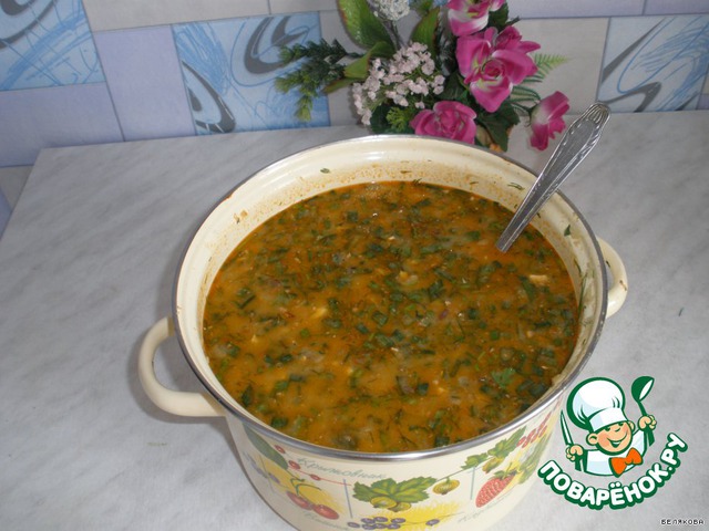 Сейчас на рынках и в огородах еще много зелени, а после малосолки огурцов иногда остается вкусный рассол. Вот и предлагаю вам все это использовать! А зимой, когда открываем банки с консервацией, и думаем - что же делать с наивкуснейшим рассолом... Может вам пригодится этот рецепт?!