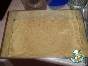 У меня форма 35 см, прямоугольная. Ставим форму с песочным тестом в духовку на 180 градусов на 20 -25 минут. Достаем и остужаем.
