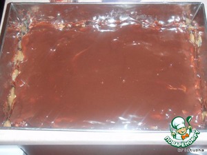 После того, как корж остынет, вылить соус и разровнять,