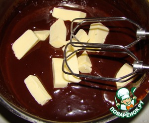 Крем: 400 мл сливок + 400 гр шоколада нагреваем до полного растворения шоколада. (Лучше это сделать до того, как Вы приступили к приготовлению бисквита, т. к. крем должен полностью остыть). В остывший крем добавляем размягченное масло (комнатной температуры) и хорошо взбиваем до плотной, воздушной массы (примерно 8-10 минут).