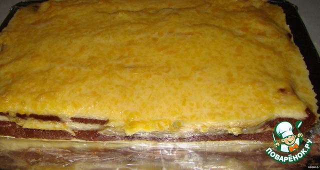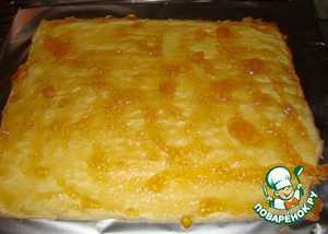Оставшееся тесто выпекаем таким же образом (корж меньше), смазываем джемом и оставляем пока в стороне.