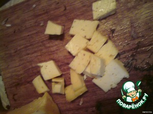 Нарезаем сыр "брусочками",размером примерно 2 Х 1 см