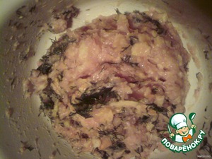 Выкладываем фарш в миску и добавляем взбитые яйца. Добавляем мелко порубленную зелень, накрошенный хлеб.Солим и перчим по вкусу.