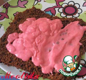 На большое блюдо выкладываем корж, смазываем кремом