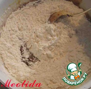 Высыпаем оставшуюся муку (1 стакан), все хорошо перемешиваем