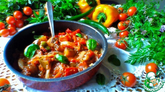 Рецепт «Баклажаны в томатном соке с перцем и луком»: