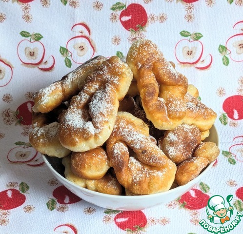 А если делать как надо, то тесто надо раскатать в пласт, но не очень тонко, порезать на жгутики, обжаривать,посыпав сахарной пудрой.