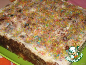 Затянуть пирог пленкой или просто чем-нибудь накрыть и оставить на ночь или до полного остывания. Затем вынуть из формы, по желанию посыпать кокосовой стружкой и можно наслаждаться.