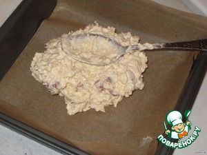 Форму выстелить бумагой или просто слегка смазать маслом. У меня квадратная форма 20 см.