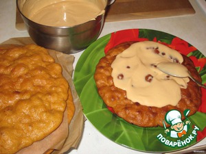 Если крем получился слишком жидким, из-за того, что сгущенка была слишком теплая, то убрать на время в холодильник, чтобы немного застыл.