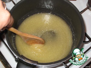 Сахар и мед поставить нагреваться в кастрюльке на медленный огонь. Довести до кипения.