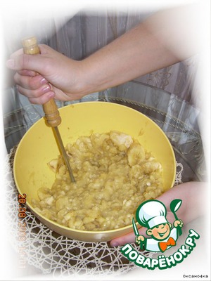 Бананы ломаем на небольшие кусочки. Затем разминаем в пюре.
