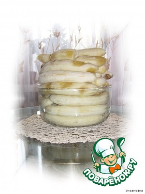 В таз наливаем воду, растворяем сахар, добавляем лимонную кислоту. В сироп выкладываем банановое пюре.
