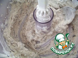 Готовим крем. Сырки перемалываем в комбайне (можно вместо сырков взять просто сладкую творожную массу примерно 23% жирности), добавляем сметану, чтобы получился крем.