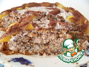 Выливаем смесь в форму, смазанную маслом (или просто в чугунную сковородку), ставим в разогретую духовку, печем минут 30 – 40. Вынимаем, охлаждаем, разрезаем на 2 коржа