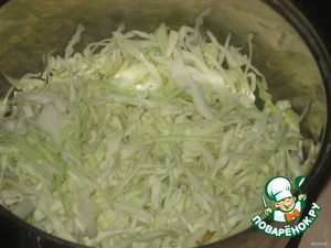 Капусту (лучше молодую) тонко нашинковать соломкой.