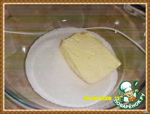 Взбить сливочное масло с 250 гр сахара и 1 ст. ложкой ванильного сахара.