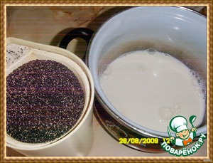 Молоко налить в кастрюльку и довести до кипения на медленном огне. Убрать с огня и добавить мак. Оставить остывать. -