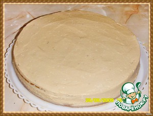 Смазать первый корж (примерно 1/3 крема), выложить сверху второй корж.