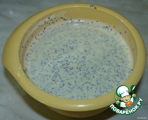 Приготовьте соус. Мак поместите в кастрюльку, залейте кипящей водой и дайте распариться 15 минут под крышкой.