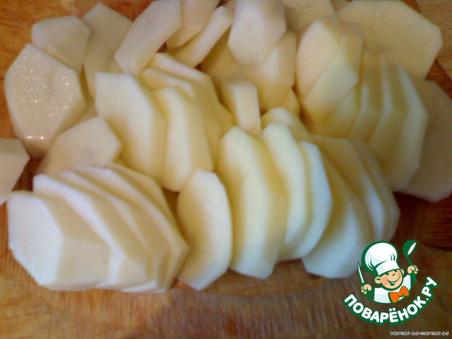 Чистим картофель и нарезаем кружками. Толщина кружков примерно 0,5 см.