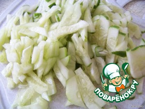 Свежий, вкусный салат. Очень быстро готовится, хорошо смотрится на столе. Удобно брать его с собой, так как, с одной стороны, он довольно легкий, полезный, но вместе с тем вполне питательный.
