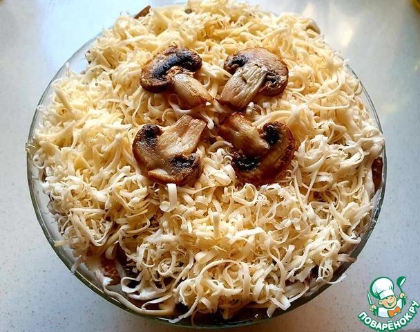 - Шампиньоны (отваренные и обжаренные целиком) — 500 г