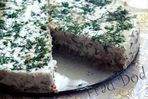 Сырный торт с ветчиной и грибами